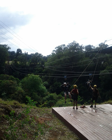 I stood there – or rather hung there in my harness – with no intention of letting go and flying. I had just watched three other couples fly down the zipline, but somehow my feet wouldn’t leave the platform.